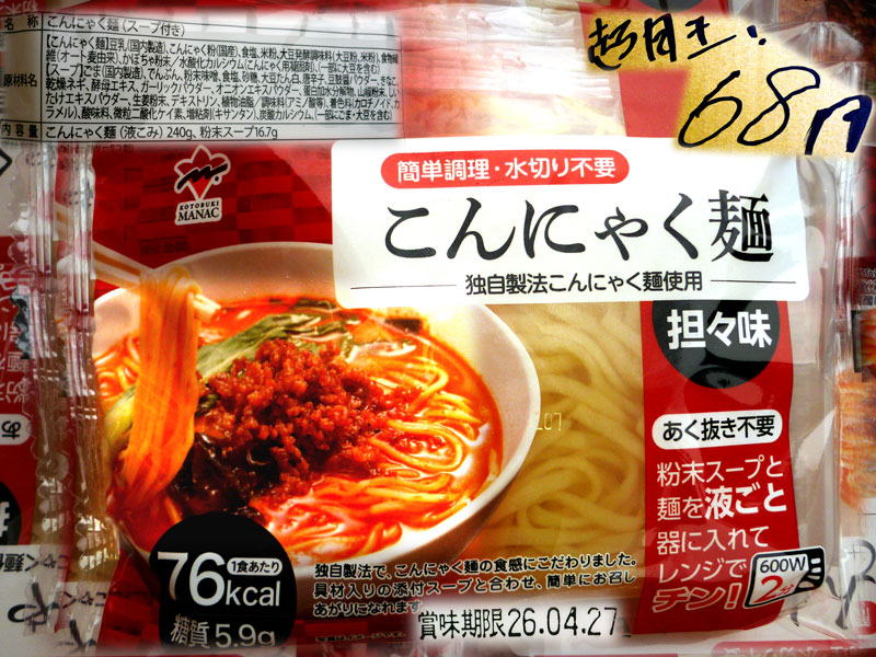 | 担々味 こんにゃく麺 240g粉末スープ16.7g 73円(税込み)s4247 |